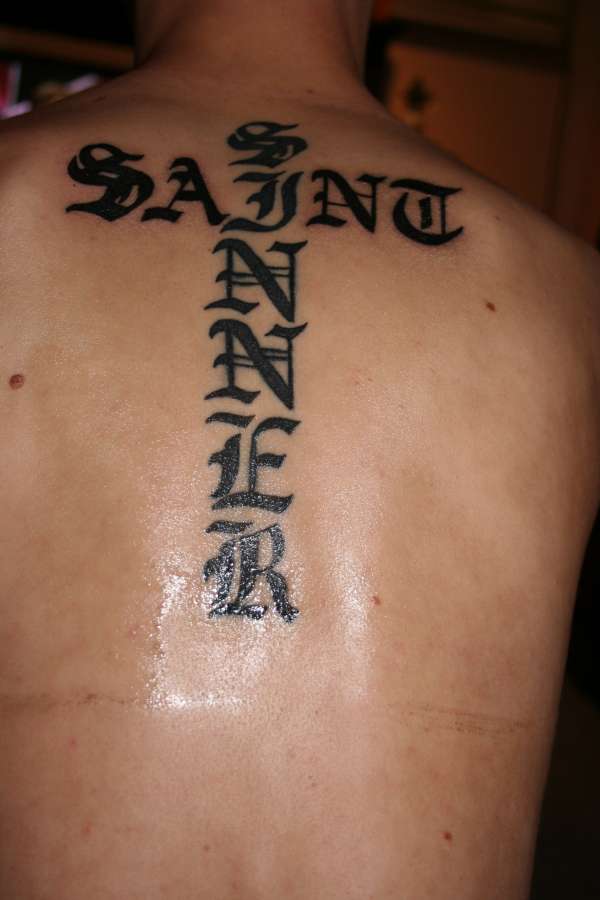 My Tattoo Says Saint And Then Says Sinner Upside Down Saint Tattoo Tattoos Tattoo Quotes